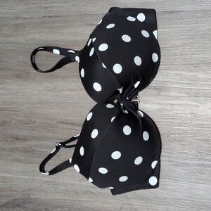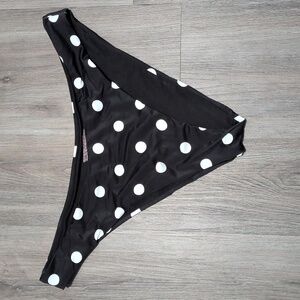 Victoria's Secret 3 Piece Twist Front Bikini, Brazilian and Side Tie Bottoms In Black and White Polka Dot sz 40DD XXL. Matching Set. Top has a twist detail at the center bust with removable push up pads, and a back hook closure. The set is in excellent pre-owned condition (I don't think I ever even wore the Brazilian bottoms). Great if you love to mix and match and have different coverage options! Photos of solid black items are JUST to show you how each piece fits the body; you will receive the three actual polka dot items only. **I also have a 40DD leopard set listed**. Ships immediately from smoke-free home
