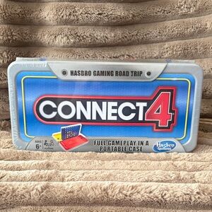 Compact Connect 4 game by Hasbro. Easy to carry. Features bold red and blue design.