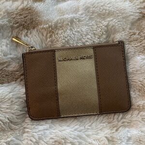 Michael Kors Women's Center Stripe MK TZ Coin Pouch Wallet DK Khaki Gold Leather