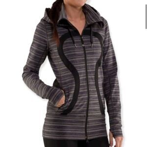 Lululemon In Stride jacket in a black and grey striped/heathered pattern size 6