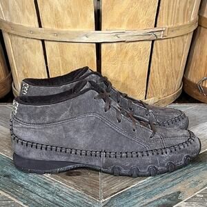 Previously loved in great condition, some wear on the upper and soles with lots of life left. Brown suede upper, memory foam insole, women’s size 8