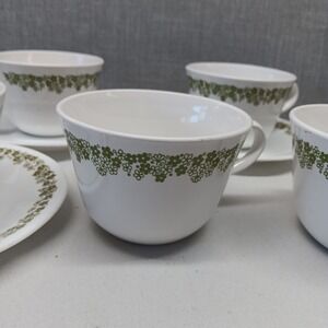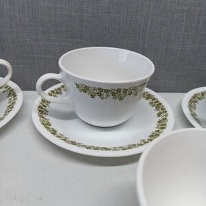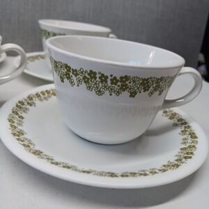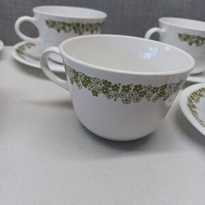 VTG Corelle Spring Blossom Crazy Daisy Green Coffee Tea Cup Saucers Lot 7 MCM