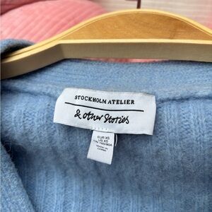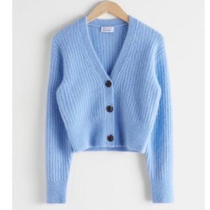 & Other Stories Wool Blend Alpaca Soft V-Neck Cardigan in Baby Blue Size XS