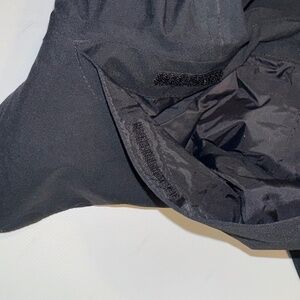 Features zipper and Velcro and snap closure, buttoned pockets, adjustable waist and hood