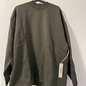 Fear of God Essentials sweatshirt in the Colour Wood. Minimalist design with a classic fit, with a Mockneck collar and a relaxed silhouette fit. Comes with original dust bag. Selling as it’s too large for me.