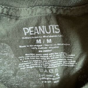 medium olive green snoopy & woodstock peanuts graphic t-shirt, suitable for men or women. lightly used & in perfect condition! made with 100% cotton