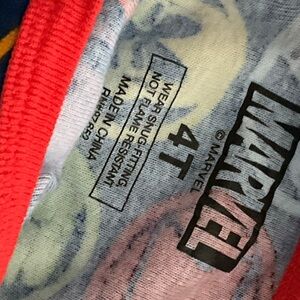 Marvel pajama set for kids. Features red and blue colors. Comfortable and stylish.