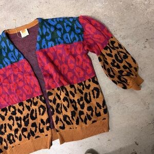 FARM Rio Mixed Print Ikat Dyed Leopard Print Balloon Sleeve Cardigan Size M