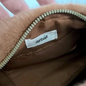 Aerie Mini Fur Bag In brown with gold zipper details NWT