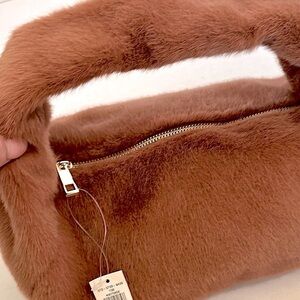 Elevate your style with the Brown Faux Fur Handbag. This chic accessory features a plush faux fur design, perfect for adding a touch of luxury to any outfit. Ideal for both casual and formal occasions. new with tags shows no signs of being worn or washed.