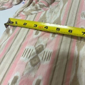 Ruby Rd. women's apparel tunic with a pink, beige, and gray ikat pattern.