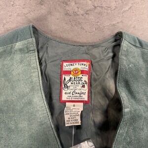 Looney Tunes Taz Tasmanian Devil Green Suede Leather Vest Mens Small NWT Vintage