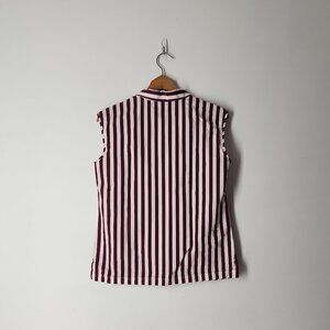 Lafayette 148 New York Yani Striped Top Sleeveless Button Up burgundy white sz 4