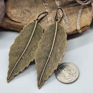 Anthropologie Leaf Boho Jewelry Antique Gold Bronze Long Earrings