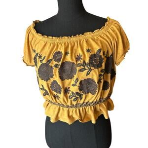 American Eagle Women’s Yellow Off the Shoulder Embroidered Crop Top Size Large