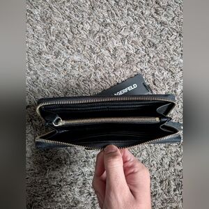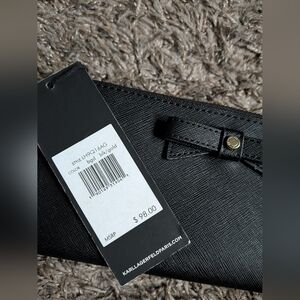 NWT Karl Lagerfeld Paris Black Bow Long Zipper Wallet Women's