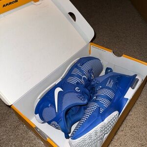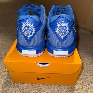Elevate your performance with these LeBron Witness 7 Nikes. Sleek blue design with white accents. Ideal for sports and casual wear. Men’s size 9, lightly used & sold w/ box