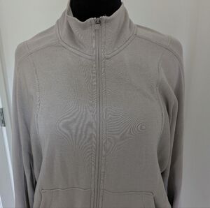 Women's Danskin Zip Up Warm Up Loose Jacket Light Beige Sweater XL EUC