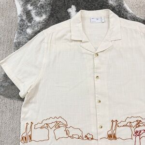 Here’s a super cool button down short sleeve shirt by ASOS. Size XL and in great shape. Love the safari embrodiered detail. Nice quality shirt! Perfect to add some uniqueness to your wardrobe. :)