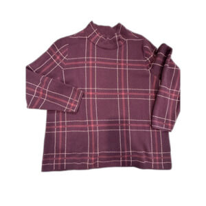 Lands' End Plum Window Pane Plaid Mock Turtleneck Sweater Size 1X