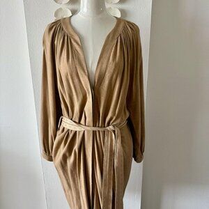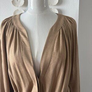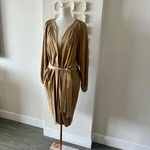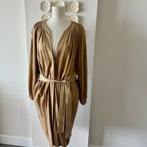 A.G.G.E.L. Greece Designer Linen-Blend Belted Dress – Camel, Size Large