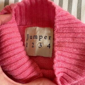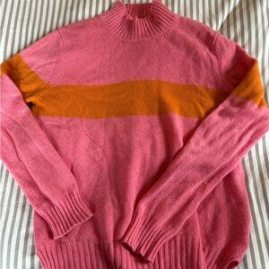 Embrace warmth and style with this vibrant pink and orange turtleneck sweater. Perfect for adding a pop of color to your wardrobe. 100% cashmere with minor pilling.