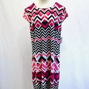 NWT LIZ CLAIBORNE Women Short Sleeve Pullover Boat Neck Zig-Zag Dress