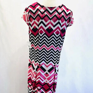 NWT LIZ CLAIBORNE Women Short Sleeve Pullover Boat Neck Zig-Zag Dress Size XL
