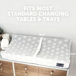 Soft gray changing pad. Perfect for nurseries. Comes with two covers.