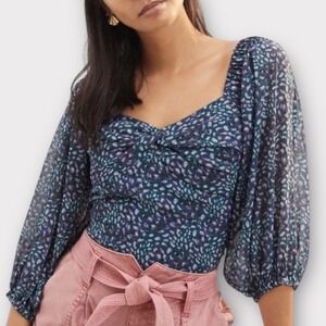 Anthropologie Hutch Medley Blouse Top Women's Small Blue Puff Sleeve Smocked