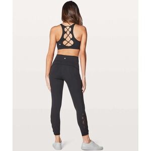 Lululemon Womens Tied To It 7/8 Tight Leggings Size 6 Black Mesh Balletcore Yoga
