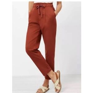 Ann Taylor LOFT High Rise Paperbag Tapered Pant Minimalist Coral Red Medium
