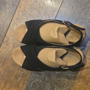 Terrific pair of leather sandals wirh cushioned footbed. Perfect heel height for everything!