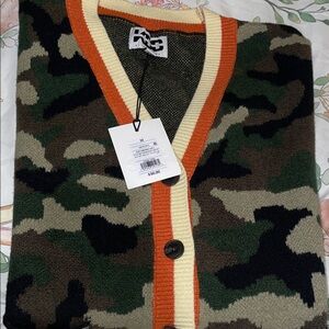 ‼️‼️OVERSIZED ‼️‼️Stylish camouflage cardigan with bold orange trim. Perfect for casual wear.