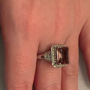 Gorgeous 925 silver Radiant Pink Stone Rhinestones Ring