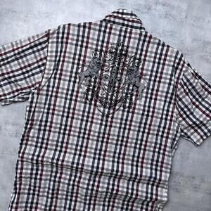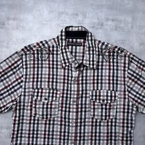 Y2K Indigo Star 00s Plaid Button Up Shirt Size Large