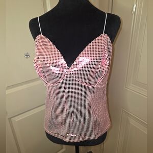 New never worn. Turn heads in this stunning pink sequin mirror-tile cami top Perfect for girls night out, birthdays, Vegas trips, concerts, or any glam moment!