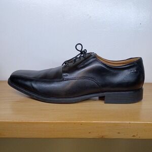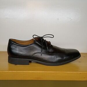 Men's Clarks Tilden Walk Lace-Up Oxfords Shoes Black Leather Square Toe Sz 14 M. In good pre-owned condition.