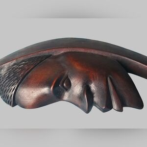 Elegant Brown Wooden Sculpturehand-carved vintage wall sculpture