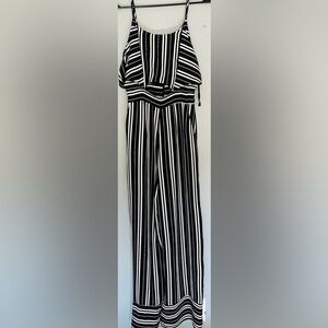Very J Black White Striped Jumpsuit S Keyhole