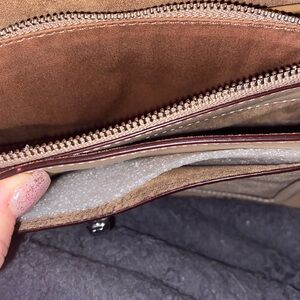 Coach Parker Tea Rose Turnlock Shoulder Bag Tan Leather Silver Chain