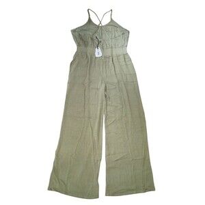 prAna Fernie Jumpsuit Womens XL Wide Leg Green Modal Gauze Crinkle Fabric Flowy