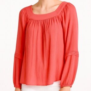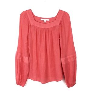 LC Lauren Conrad Blouse Size S Coral Sheer Crepe Square Neck Long Sleeves