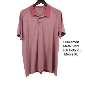Lululemon Metal Vent Tech Polo 2.0 Mens XL Red White Striped Short Sleeve Shirt