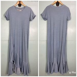 Free People Beach Havana Tee Dress Flowy Slouchy Maxi Ruffle Sz M Blue