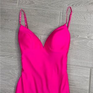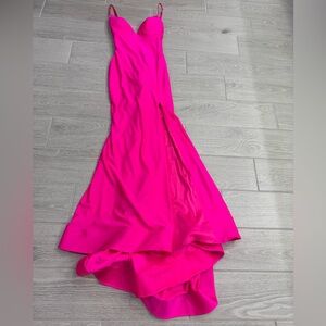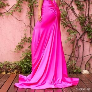 SHERRI HILL Fitted Jersey Gown w/ V Neck Low Open Back Fuchsia Hot Pink Size 4