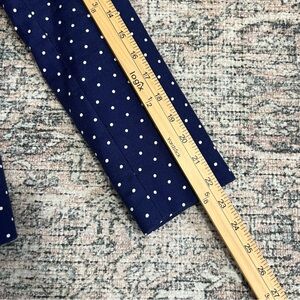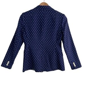 Stylish navy blazer with white polka dots. Features a classic fit and button closure. Perfect for professional or casual wear.