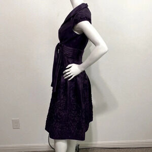 Adrianna Papell Purple A-Line Cap Sleeve V-Neck Embellished Midi Dress Size 4