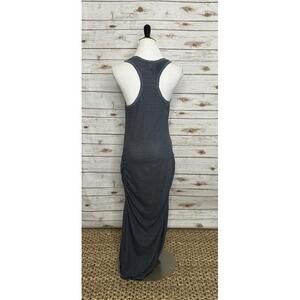 James Perse cotton grey/blue striped racerback ruched maxi dress