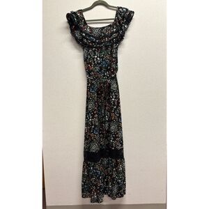 Floral Boho Peasant Maxi Dress Ruffle & Lace Neckline Hem Coquette Cottagecore M
